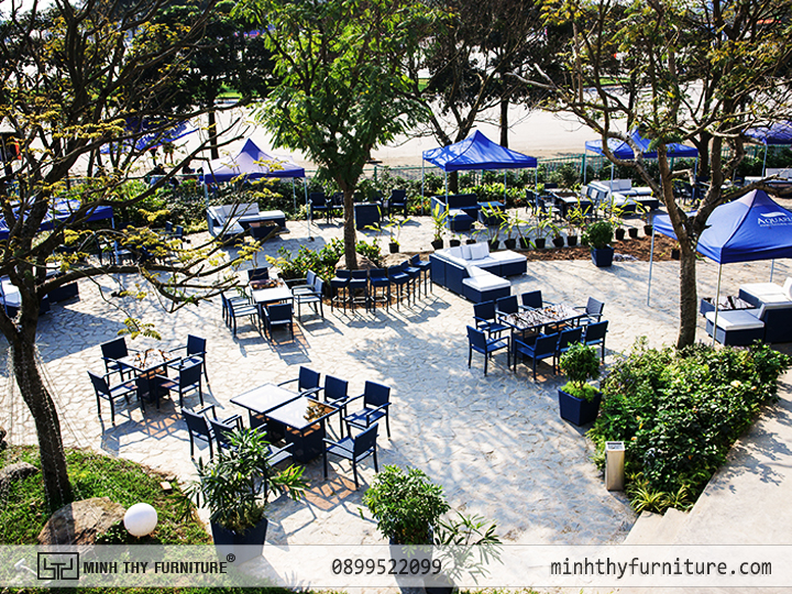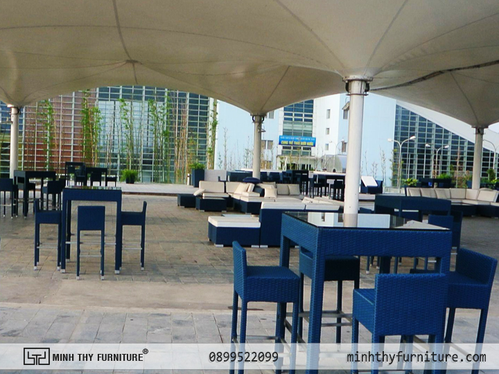 Cafe AQuaria chọn Minh Thy Furniture cung cấp bàn ghế nhựa giả mây,ghế quầy bar ,sofa mây nhựa,ghế hồ bơi