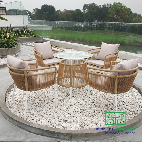 Nội thất Minh Thy giới thiệu bộ bàn ghế cafe ngoài trời nhựa giả mây, hoàn hảo cho không gian ngoài trời như quán cafe, sân vườn và ban công. Sản phẩm có thiết kế hiện đại, tinh tế với sợi nhựa giả mây cao cấp, chống tia UV và kháng nước, đảm bảo độ bền và thẩm mỹ. Khung ghế chắc chắn, làm từ thép sơn tĩnh điện hoặc nhôm, chống gỉ sét và chịu được mọi điều kiện thời tiết. Mặt bàn bền bỉ, dễ dàng vệ sinh, tạo vẻ đẹp tinh tế cho không gian. Bộ bàn ghế cafe nhựa giả mây của Nội thất Minh Thy không chỉ mang lại không gian cafe tiện nghi mà còn là điểm nhấn thẩm mỹ, tạo cảm giác thư giãn và thoải mái. Sản phẩm dễ dàng bảo quản, vệ sinh, giúp tiết kiệm thời gian và công sức. Với bộ bàn ghế cafe mây nhựa của Nội thất Minh Thy, bạn sẽ có một không gian thư giãn tuyệt vời, nâng cao trải nghiệm khách hàng và tạo nên không gian sống ngoài trời phong cách. Hãy đến với Nội thất Minh Thy để trải nghiệm sản phẩm chất lượng và đẳng cấp.