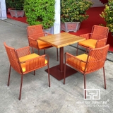 Các bạn có thể lựa chọn chất liệu khung từ ba kim loại: sắt kẽm, nhôm, inox. Lựa chọn màu sắc dây đan và áo vải cho nệm ngồi phù hợp nhất với chủ đạo màu sắc không gian trưng bày của bạn.