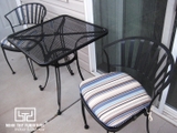 Chất liệu sắt được uốn cong nghệ thuật làm khung bao viền, mê ngồi và mặt bàn được dập lưới tạo độ thoáng mát và không kém phần đẹp mắt sang trọng.