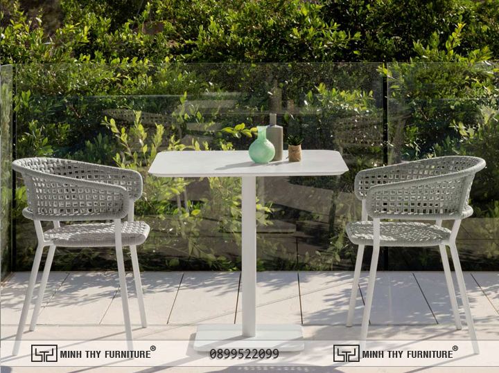 Bàn ghế café giả mây đan giăng độc đáo cho sân thượng