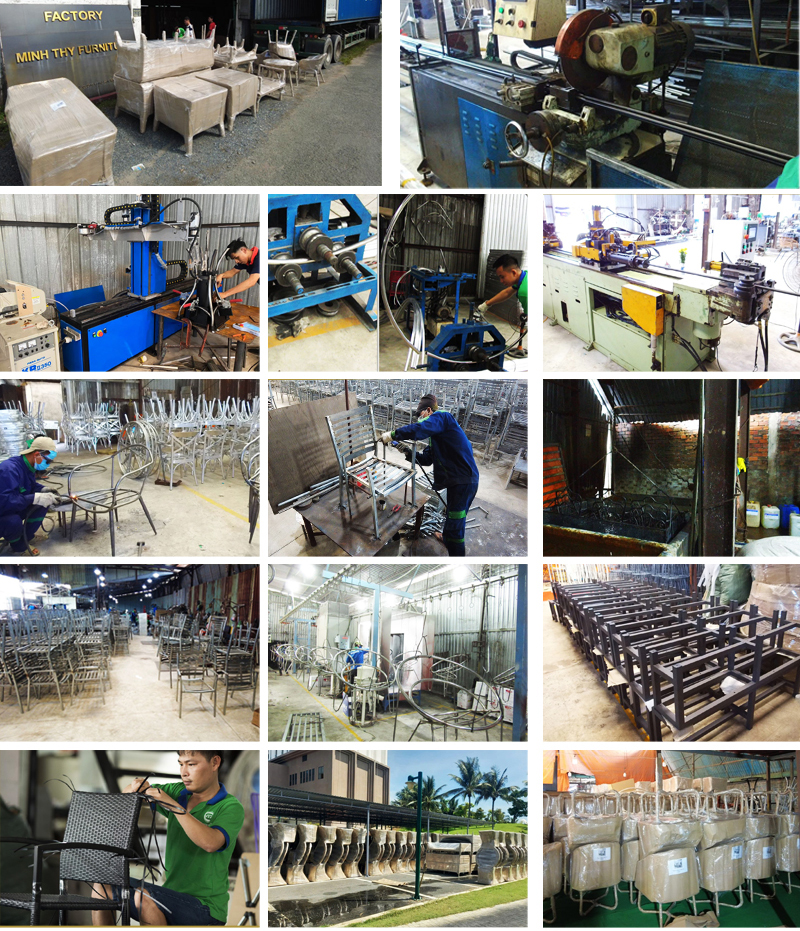 • Chủ động sản xuất toàn bộ chuỗi: Xưởng cơ khí, sơn tĩnh điện, đan sợi, may nệm tại chỗ.