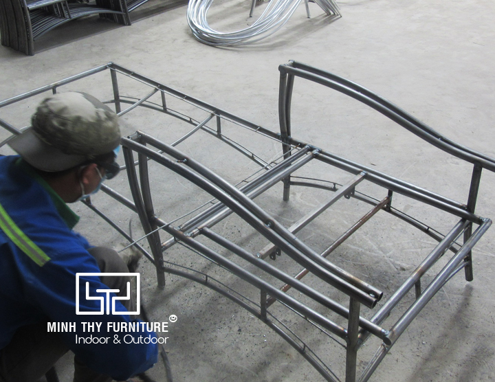 Sản Xuất Khung Nhôm Ghế Cafe Nhựa Giả Mây Xuất Khẩu Tại Xưởng Cơ Khí Minh Thy Furniture