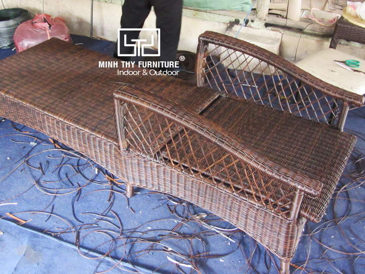 Hướng dẫn đan mẫu giường tắm nắng nhựa giả mây tại xưởng đan mẫu Minh Thy Furniture