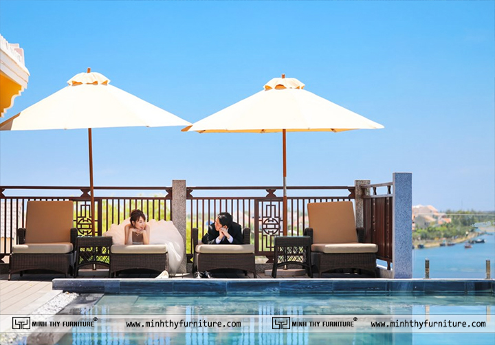 Little Riverside Hoi An . A Luxury Hotel & Spa Chọn Minh Thy Furniture cung cấp ghế hồ bơi nhựa giả mây