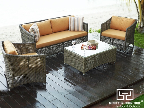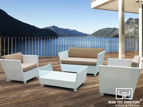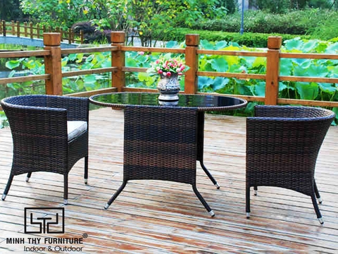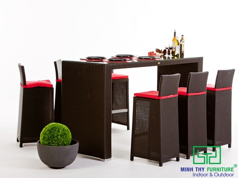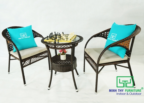 Bàn ghế được làm từ nhất liệu nhựa giả mây của Minh Thy được sản xuất theo tiêu chuẩn xuất khẩu, mức giá xuất xưởng, đảm bảo chất lượng với đội ngũ kĩ thuật chuyên nghiệp.