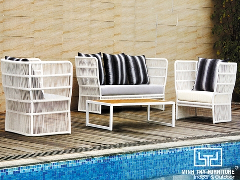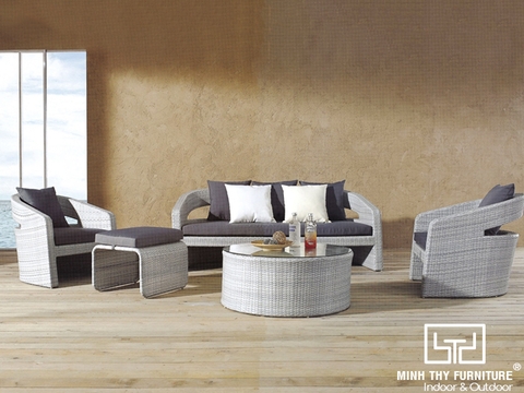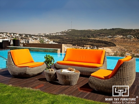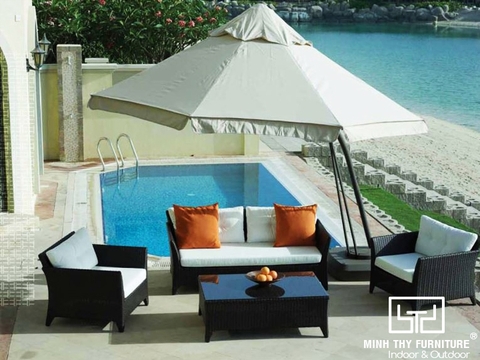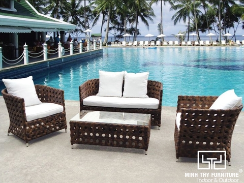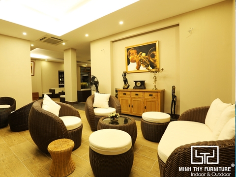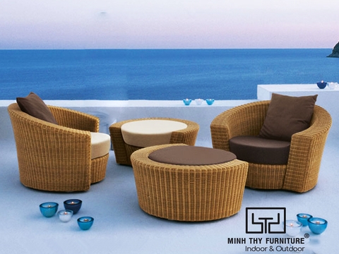 Những sản phẩm nội thất nhựa giả mây của Minh Thy Furniture đa dạng về chủng loại, thiết kế và màu sắc như bàn ghế cafe, giường nằm hồ bơi, xích đu trứng, ghế quầy bar, ghế sofa mây nhựa, salon set...
