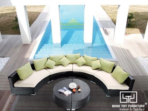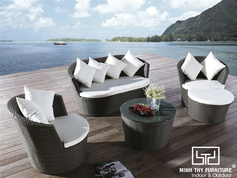 Những sản phẩm nội thất nhựa giả mây của Minh Thy Furniture đa dạng về chủng loại, thiết kế và màu sắc như bàn ghế cafe, giường nằm hồ bơi, xích đu trứng, ghế quầy bar, ghế sofa mây nhựa, salon set...