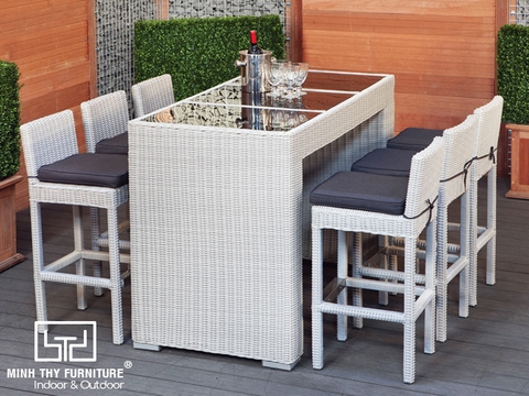 Bàn ghế được làm từ nhất liệu nhựa giả mây của Minh Thy được sản xuất theo tiêu chuẩn xuất khẩu, mức giá xuất xưởng, đảm bảo chất lượng với đội ngũ kĩ thuật chuyên nghiệp.