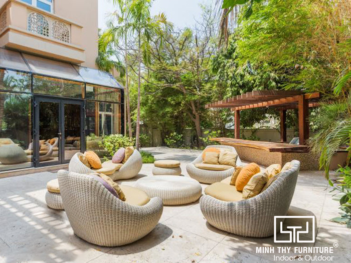 Còn đối với các phong cách đan dày, kín thì thích hợp để trang trí tại các vị trí gần nhà hoặc trong nhà. Có thể mua sắm các bộ sofa mây nhựa hình khối vuông, hình tròn. Bạn có thể kết hợp thêm với nệm gối để tăng sự thoải mái khi sử dụng. Cũng là tăng sự lịch lãm, ấn tượng với màu sắc nổi bật, tăng tính hiện đại cho sản phẩm.