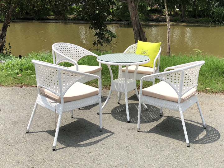 Vì thế, bài trí ngoài trời cũng không sợ bị hư hỏng. Và nhất là, ghế mây nhựa này rất dễ vệ sinh bằng nước cực kì nhẹ nhàng không tốn công sức.