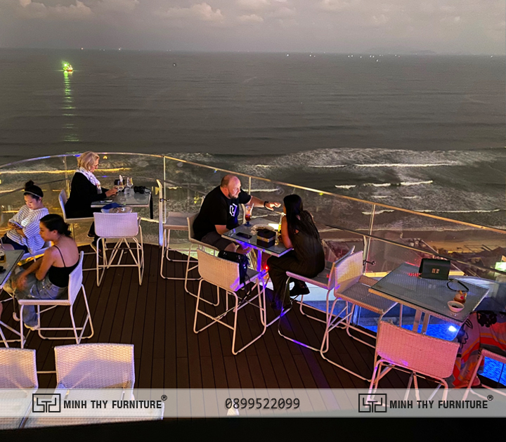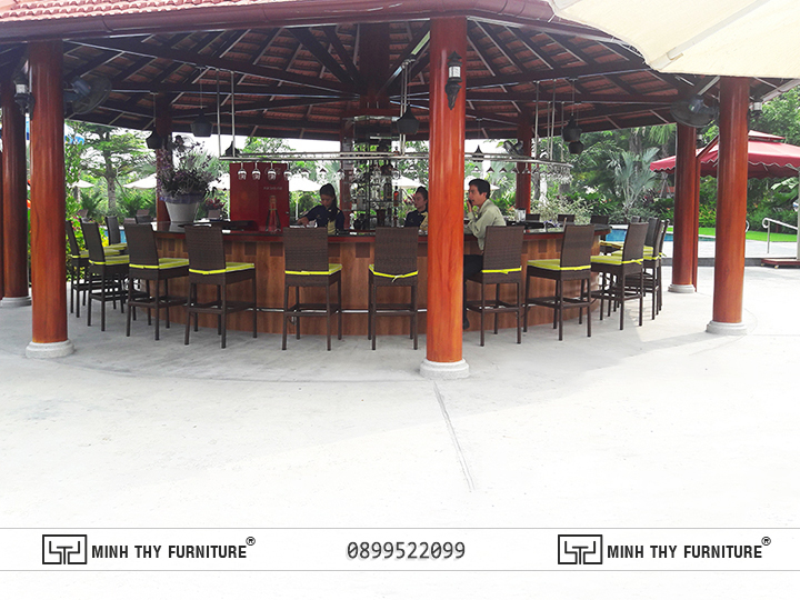 Nhắc đến ý tưởng bài trí này, Minh Thy Furniture lại nhớ đến dự án Hòa Tiến Coffee nằm trên đường 23 Linh Chiểu - Thủ Đức. Toàn bộ nội thất mây nhựa trong quán đều do Minh Thy cung cấp, dĩ nhiên không thể thiếu những mẫu ghế quầy bar cho ban công dưới mái hiên tầng trệt.