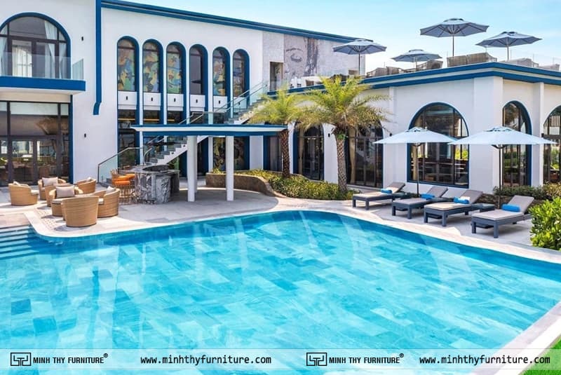 Khu nghỉ dưỡng cao cấp Phú Quốc: Minh Thy cung cấp hệ thống bàn ghế hồ bơi, sofa sân vườn và nội thất ngoài trời đồng bộ, giúp resort đạt tiêu chuẩn quốc tế về thẩm mỹ và chất lượng.